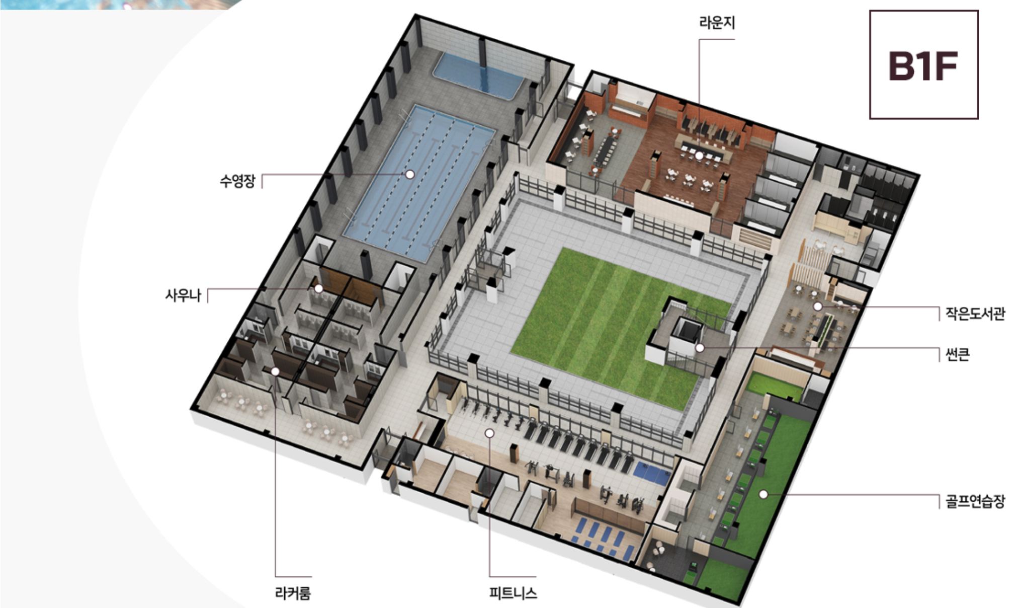 피트니스, 골프연습장, 도서관 등