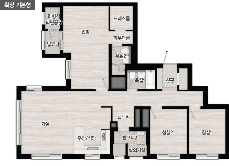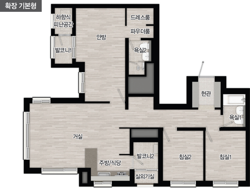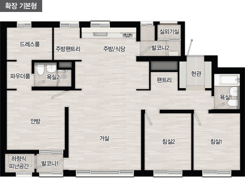 세탁실의 높이가 낮은 구조는 전타입 동일하다