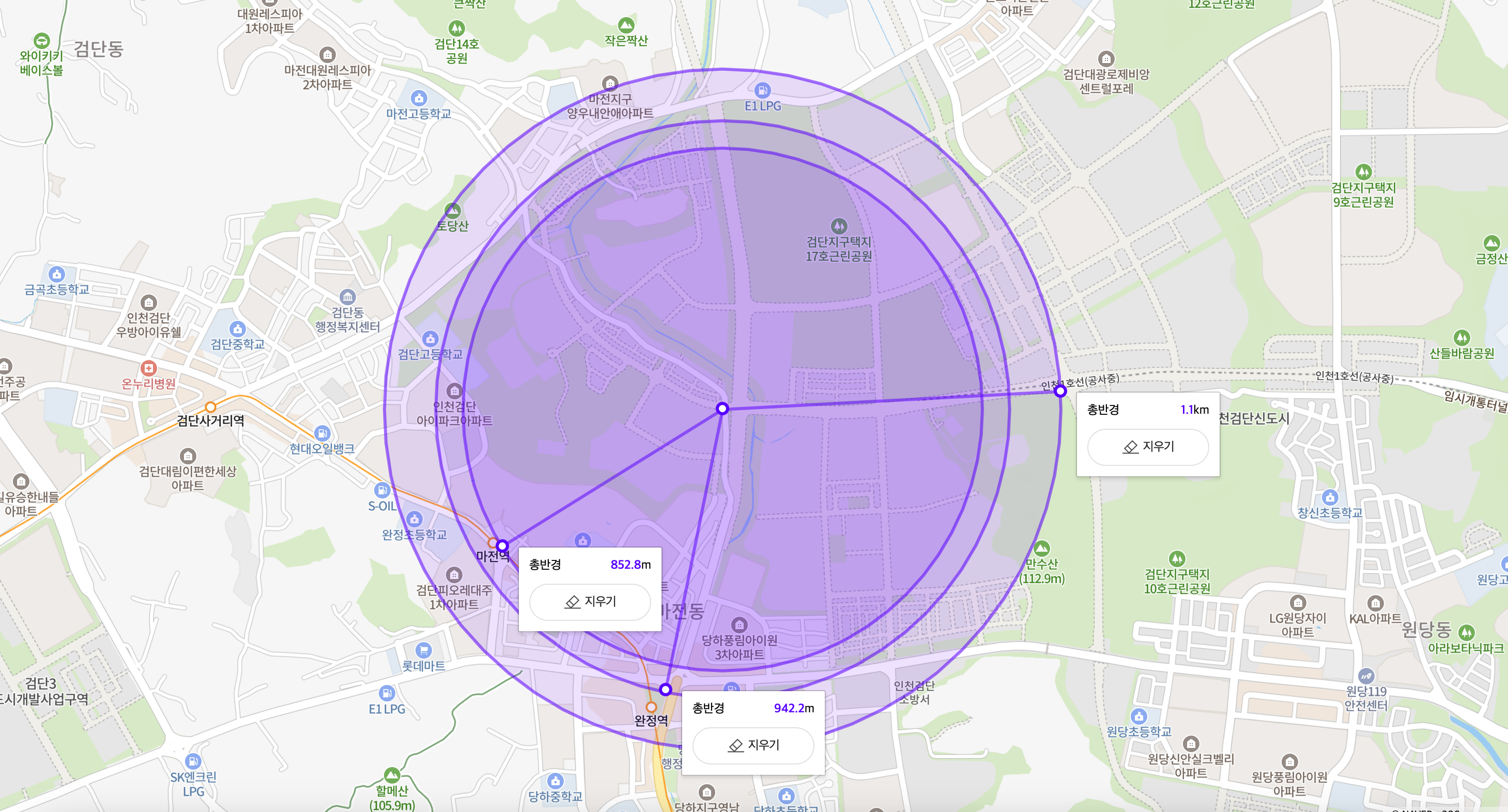 마전역, 완정역, 103역 순으로 가깝다