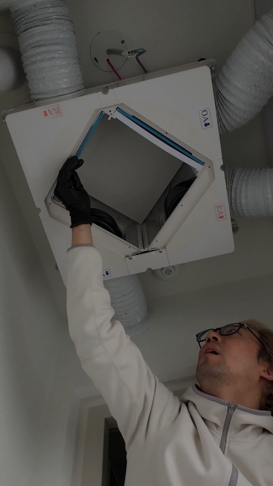 필터를 교체할 때 열교환 소자를 내려봤는데