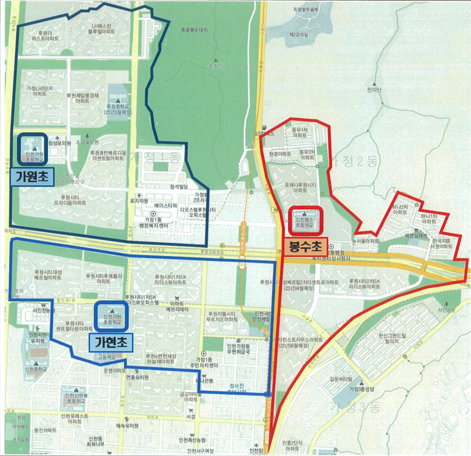 2024년 4월에 조정된 통학구역은 이렇다