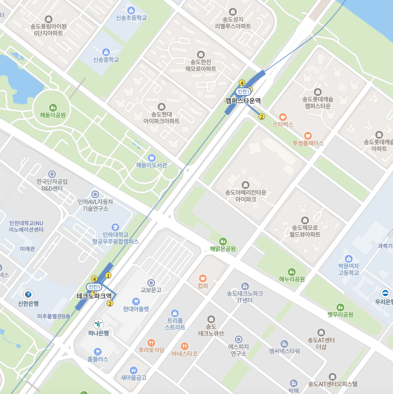 위치는 인천1호선 캠퍼스타운역 2번 출구 바로 앞이다